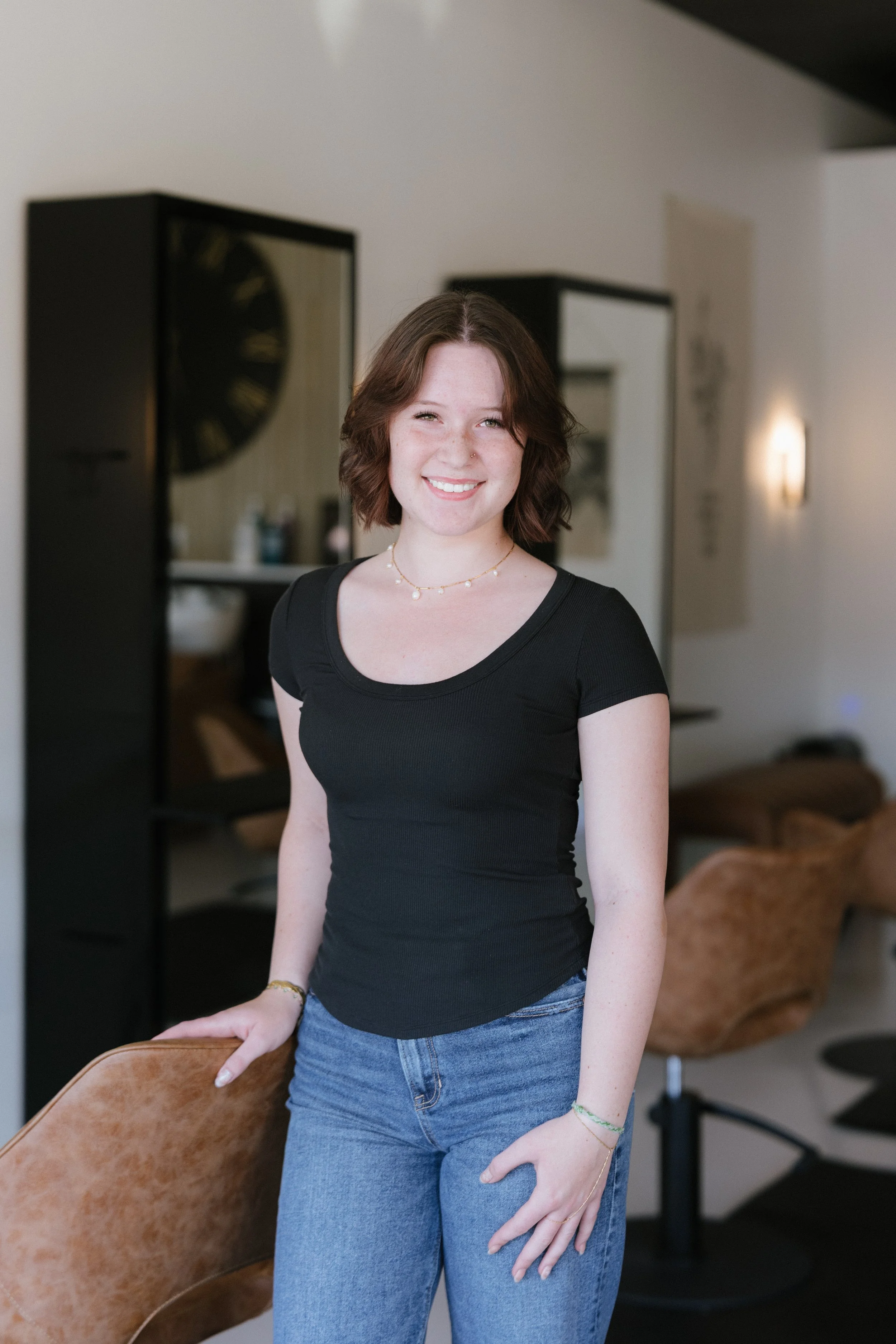 Madie has been behind the chair for 3 years, specializing in custom cuts, color and bridal/event hair. Outside of the salon she loves spending time with family, painting, baking, going to games with her boyfriend, and playing bass guitar.